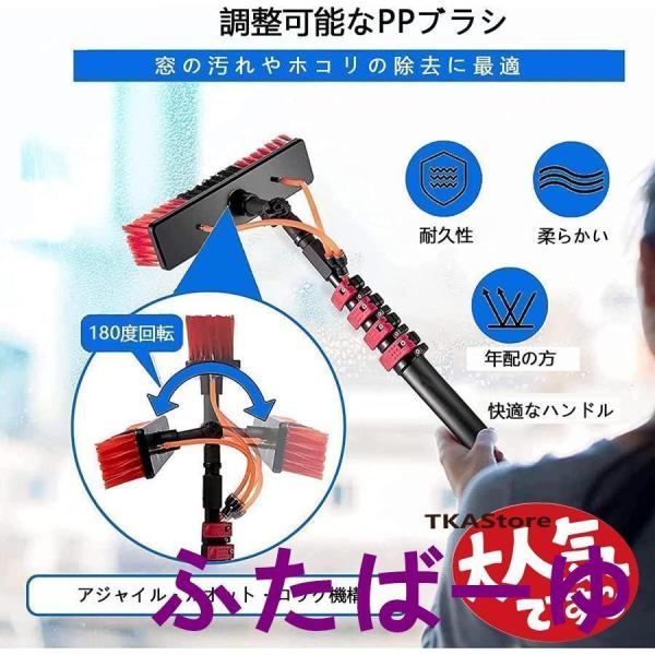 高所掃除ブラシ 散水ブラシ 3.6m~9m 給水伸縮ブラシ 外壁掃除 35Cmブラシヘッド 窓ガラス/壁掃除 高所ワイパー 超ロングポール 業務用 軽量 取り外しが簡単