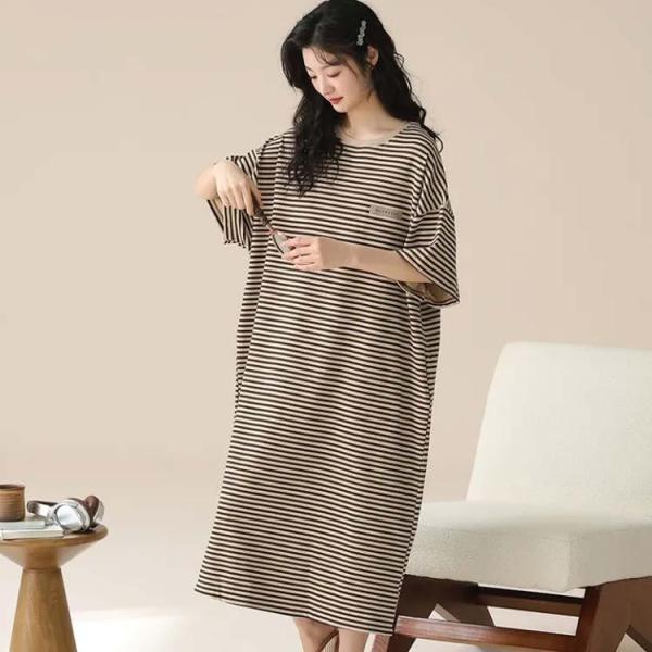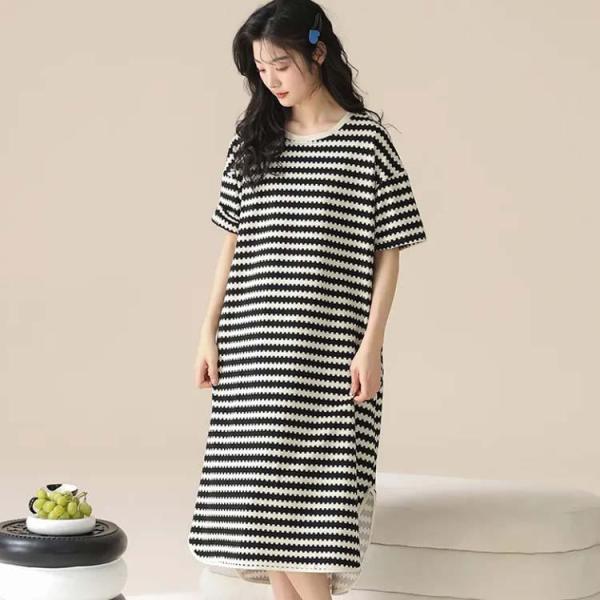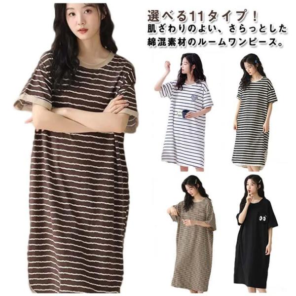 ボーダー柄 パジャマ ワンピース 涼しい 柔らかい ルームウェア 薄手 半袖 春夏 レディース 可愛い ルームワンピース 部屋着