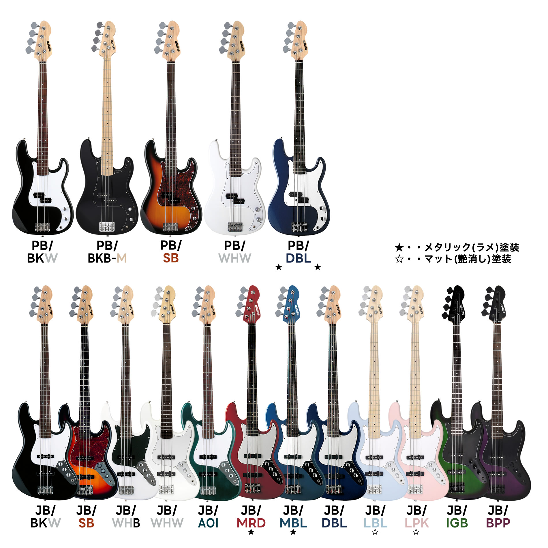豊富なカラーバリエーションの中からあなた好みのエレキベースで最高のベースライフをはじめちゃおう!