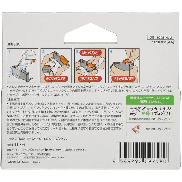 CANON 純正インクカートリッジ マゼンタ 大容量 BCI-381XLM キヤノンBCI-381XL M 純正外紙箱なし アウトレット PIXUS TS8430 TS8330 TS8230 TS8130 TS7430