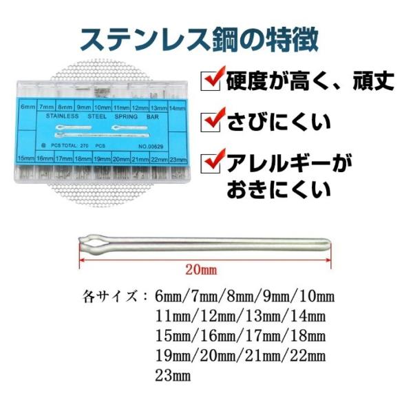 割りピン 全18サイズ セット 「6mm ~ 23mm」ステンレス製 中割れタイプ 割ピン 腕時計の調整用に! 各サイズ20本入り 高強度 頑丈