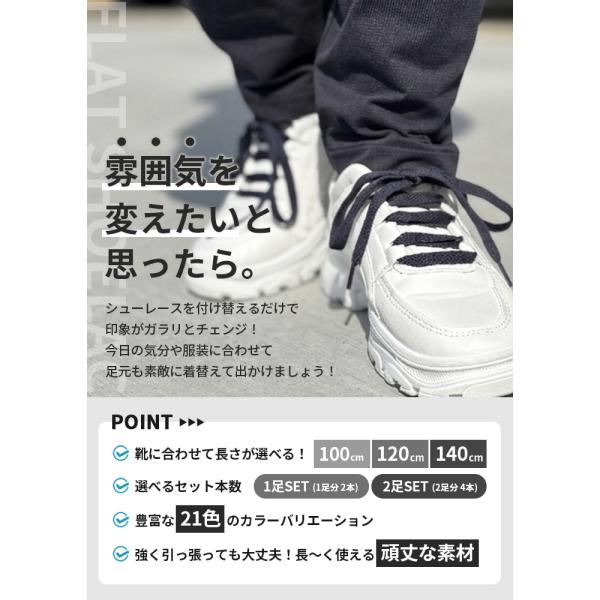靴紐 【全21色】 シューレース 平紐 8mm おしゃれ スニーカー 100cm 120cm 140cm ローカット ハイカット 無地 カスタイマイズ 丈夫 替え紐 推し活 シンプル