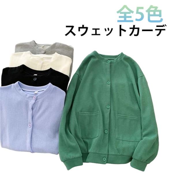 スウェットカーディガン レディース 春 秋 ショルダー カーディガン スエット トップス ノーカラー ジャケット 薄手 丸首 パーカー カジュアル 長