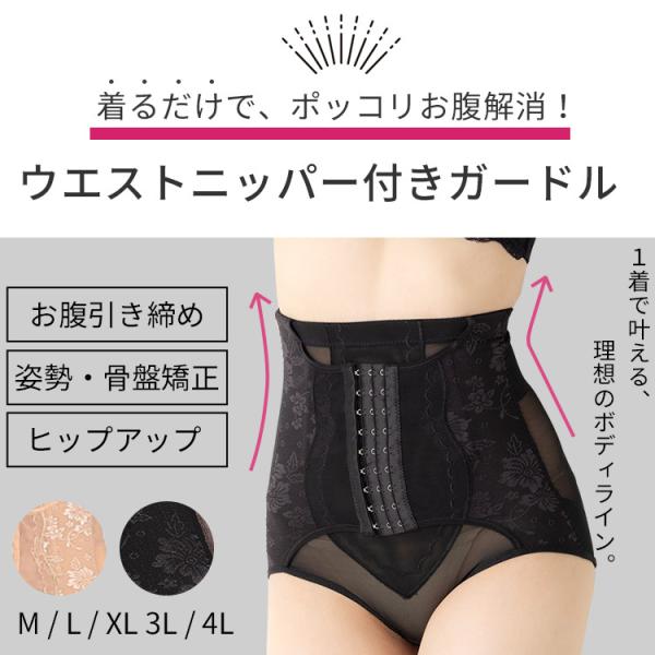 ウエストニッパー付きガードル (M L 2L 3L 4L) ボディシェイパー ガードルショーツ ハイウエストガードル お腹押さえ 補正インナー ヒップアップ 歪み 補整下着