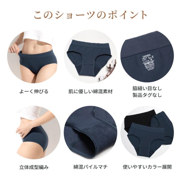 商品名:ショーツ レディース セット パンツ 下着 女性 綿 シームレス 縫い目のない 3枚 50代 40代 30代 20代 綿混 スタンダード 三恵 通気性 伸縮 福袋 爆買