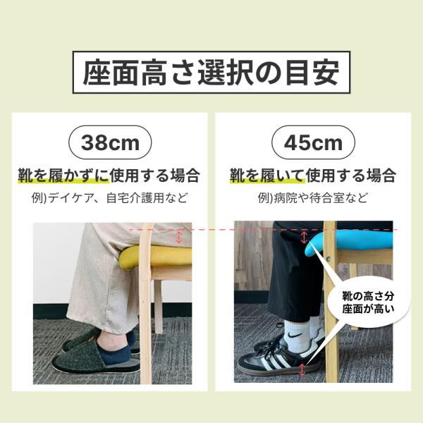 介護用としても使いやすく、座面高38cmの低めタイプも選べます。