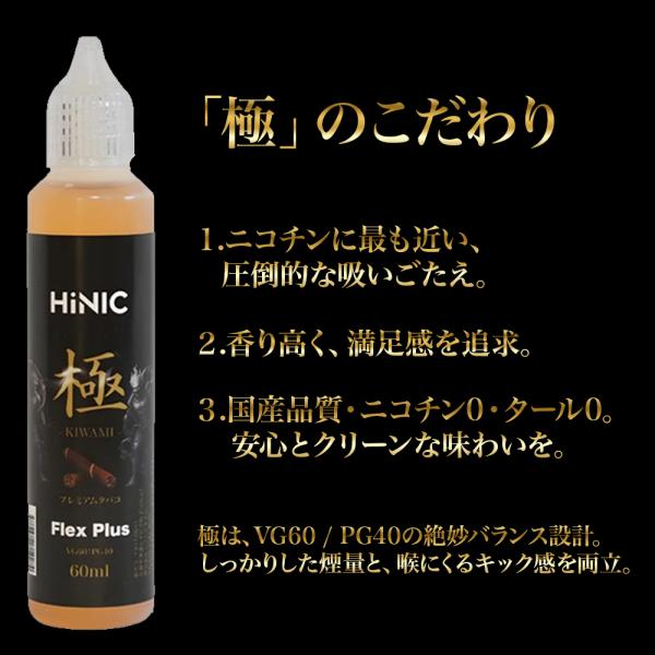 FlexPlus HINIC 極 リキッド 60ml 電子タバコ VAPE ベイプ 国産 メンソール バニラ フルーツ マスカット タバコ ニコチン0 タール0 ハイニク 爆煙