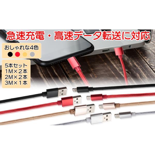 【2021モデル】iPhone ライトニングケーブル 充電 データ転送 急速充電 USB同期 Lightning ケーブル 高耐久 【1m×2本、2m×2本、3m×1本】5本組