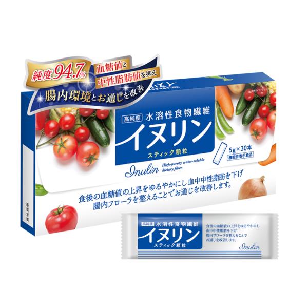 【5年連続モンドセレクション最高金賞受賞】高純度・水溶性食物繊維・イヌリンスティック顆粒5g×30包 便秘 血糖値 中性脂肪値 腸内フローラ【機能性表示食品】