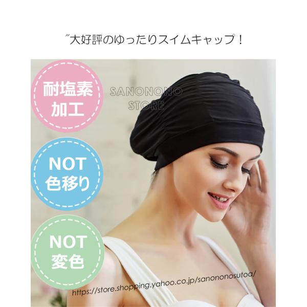 商品カテゴリ : スイムキャップ 水泳帽 キャップ 帽子 無地 シンプル レディース 大きいサイズ ゆったり 締め付けない フィットネス 水着 30代 40代 50代 60代 70代 ママ ミセス
