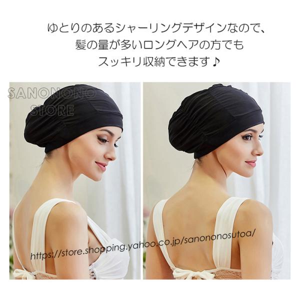 水泳帽 スイムキャップ レディース おしゃれ スイミングキャップ 大人 ロングヘア 大きめ ギャザー フィットネス 長い髪 深め ゆったり