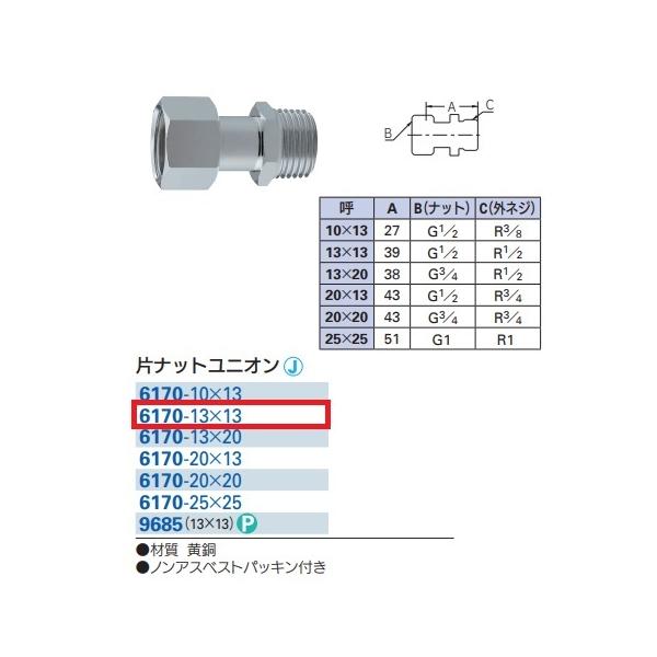 ■カクダイ 製品■片ナットユニオン■6170−13×13■15A■袋ナット側 Gねじ(平行ねじ)×オネジ側 Rねじ(テーパーねじ)■黄銅製メッキ品■1個単位の販売ですが、複数注文 大歓迎です♪■小箱10個入り(大箱100個入り)