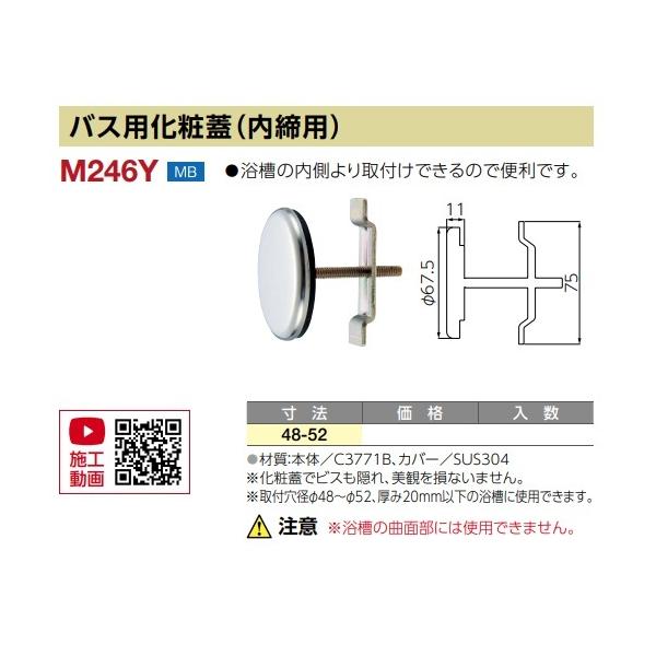 ■ミヤコ 製品 ■バス用化粧蓋 ■M246Y■内締めタイプ(浴槽の内側から施工出来ます)■化粧蓋でビスも隠れて美観を損ないません■取付可能穴径 Φ48〜Φ52■浴槽厚み 20mm以下まで■浴槽の曲面部には使用不可です ※離島は別途送料が掛かります
