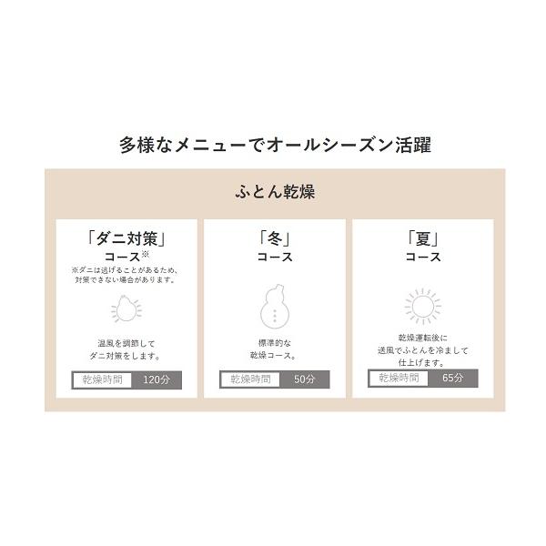 ●消費電力(W)(50 / 60Hz) 670 / 668●運転音 ふとん乾燥時(約dB) 49(ふとん乾燥時)●外形寸法(約cm) 20×15×33●質量(約kg) 3.4