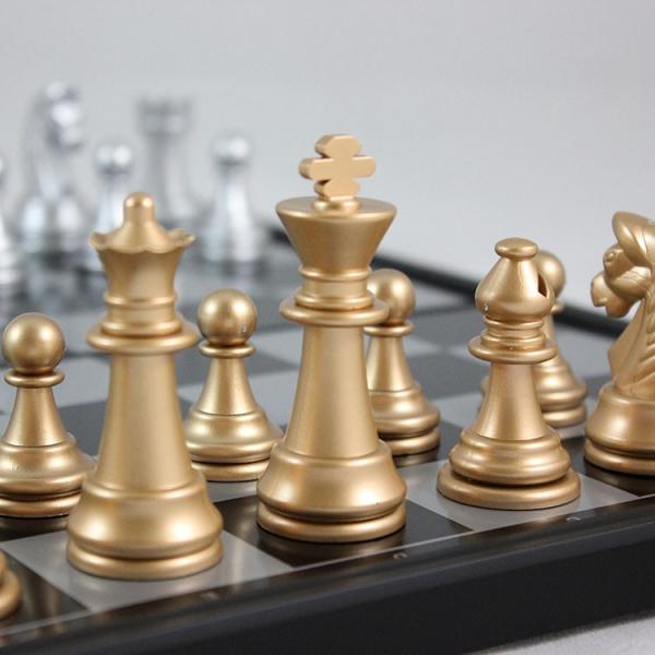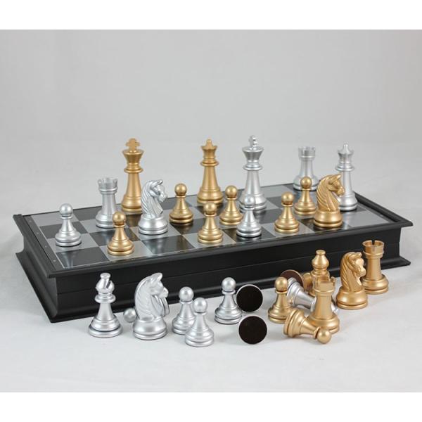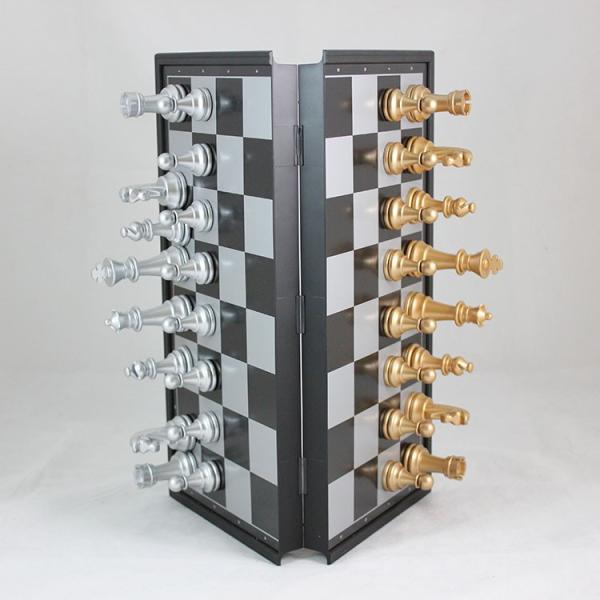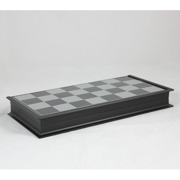 ボードは折りたたみ式、駒はチェスボードの中に収納できます。