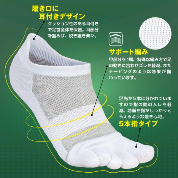 ジームード スニーカー丈 5本指 ソックス 3足組 セット 機能性 くるぶし丈 靴下 吸汗速乾 消臭 滑り止め 白 黒 22-27cm GMOOD