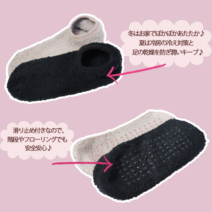 靴下 女性用 レディース あったか ルームソックス すべり止め もこもこ 冷え対策 冷え性 暖かい ふわふわ 室内用 ブラック グレー プロヴァンス PROVENCE