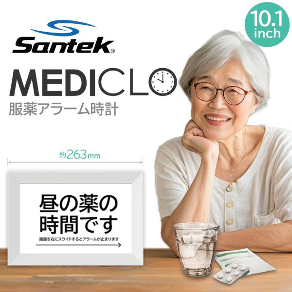 爆買 敬老の日 MEDICLO 薬時計10.1型 服薬サポート Wi-Fi タッチパネル 操作簡単 飲み忘れ防止 文字音声通知 5言語対応 ACアダプタ付 高齢者 介護 Santek