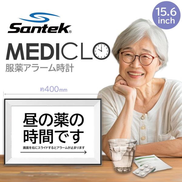 爆買 敬老の日 MEDICLO 薬時計 15.6型 服薬サポート Wi-Fi タッチパネル 操作簡単 飲み忘れ防止 文字音声通知 5言語対応 ACアダプタ付 高齢者 介護 Santek