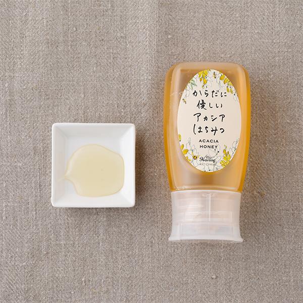液だれしにくいチューブタイプのあま〜いアカシアはちみつ。