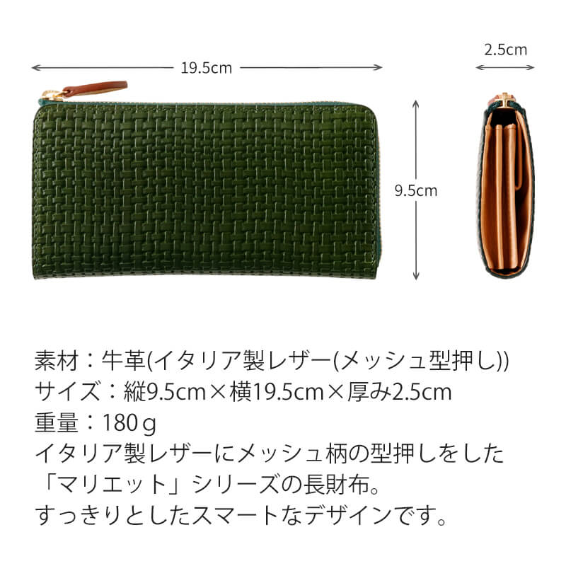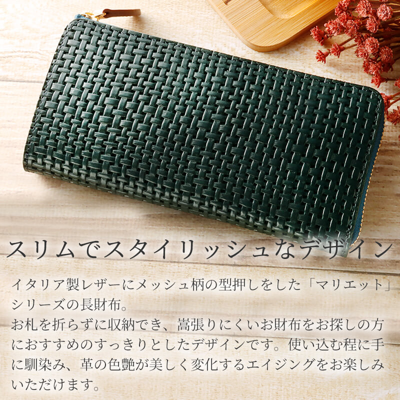 スタイリッシュなメッシュ柄の型押し イタリア製レザーの 長財布