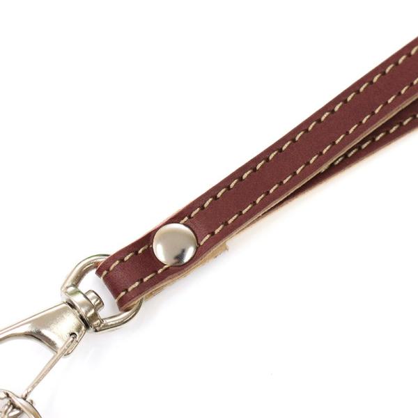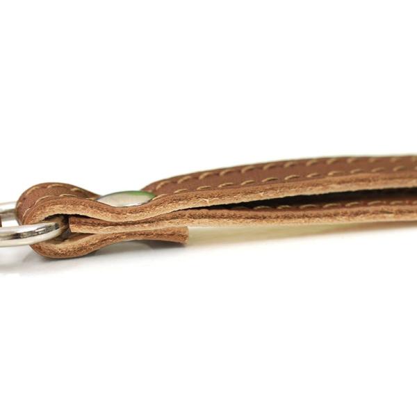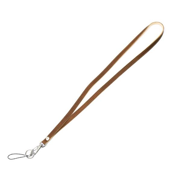 裏表に革を貼った丈夫な作りの ネックストラップ