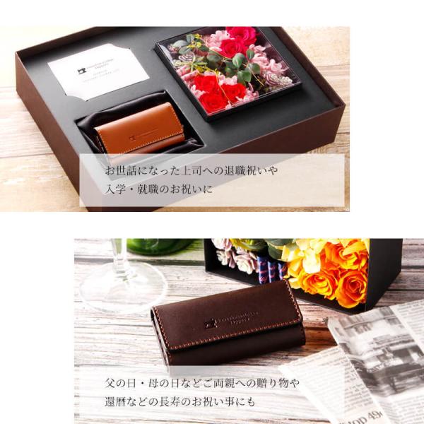 キーケース 革 名入れ プリザーブドフラワー ギフトセット 花 フラワー ギフト プレゼント 誕生日プレゼント 還暦 祝い 結婚祝い 誕生日 男性 女性 母の日