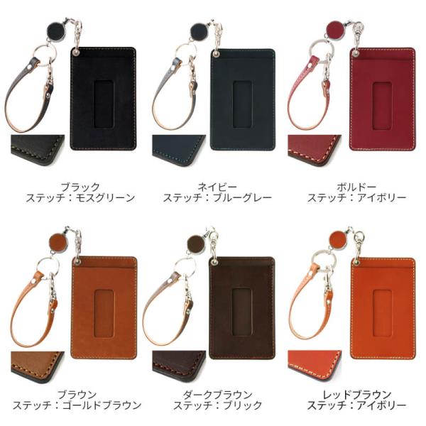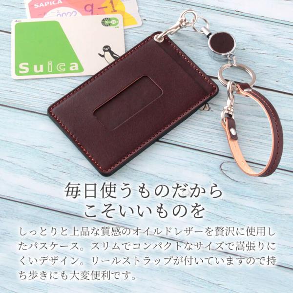 リール付きパスケース 本革 名入れ 定期入れ 札幌革職人館 ストラップ付き パスケース リールストラップ レザー メンズ レディース プレゼント 母の日