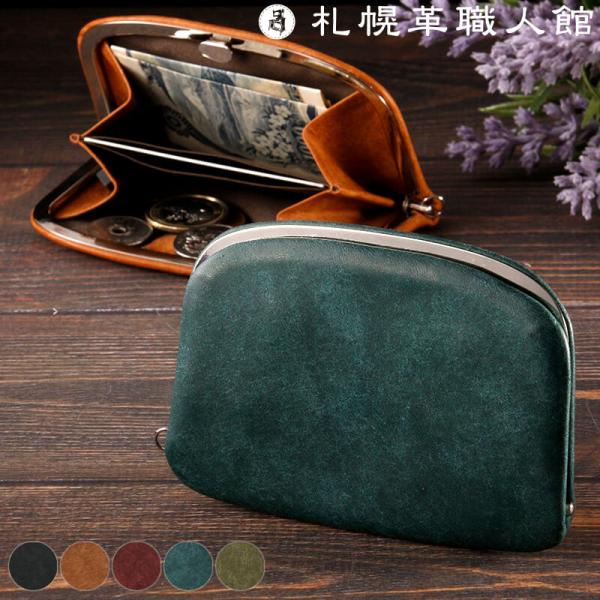 札幌革職人館 ミニ財布 プエブロ コインケース がま口財布 メンズ 革 がま口 押し口 小銭入れ 財布 スリム コンパクト ウォレット 日本製 誕生日プレゼント