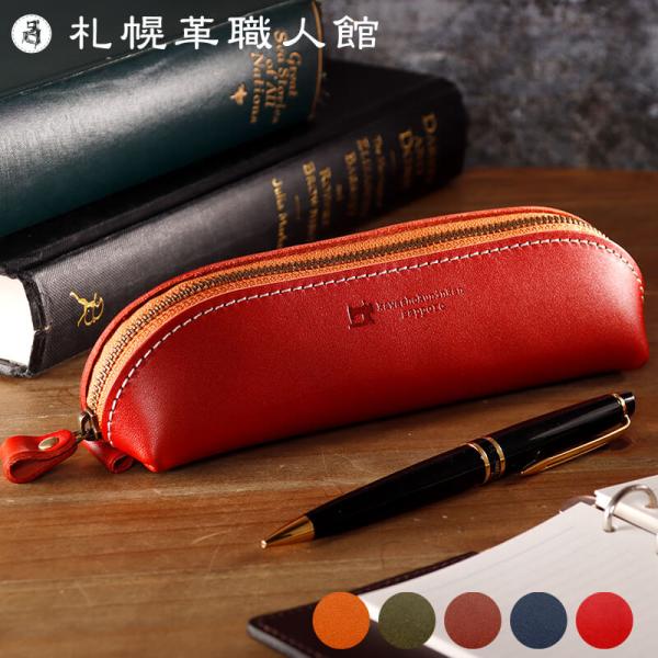 札幌革職人館 ペンケース 革 メンズ レディース 栃木レザー 本革 大容量 シンプル ファスナー 筆箱 日本製 ギフト プレゼント 贈り物 母の日