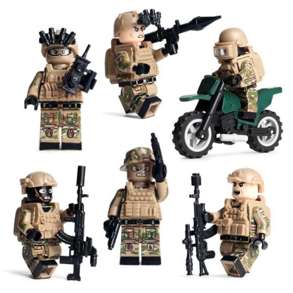 【互換品】 LEGO レゴ 互換 ブロック ミニフィグ 特殊部隊 迷彩部隊 6体セット 武器+バイク付 大人 レゴブロック ブロック玩具 おもちゃ 誕プレ 軍隊 兵隊 知育