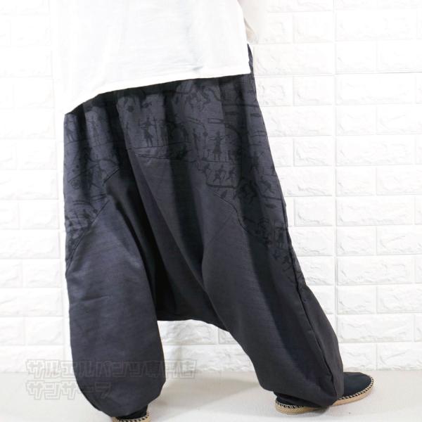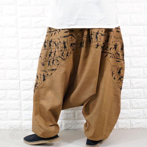 シンプルで履きやすく壁画風のエスニック柄が特徴的なサルエルパンツです。