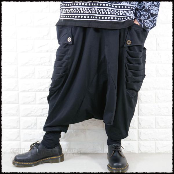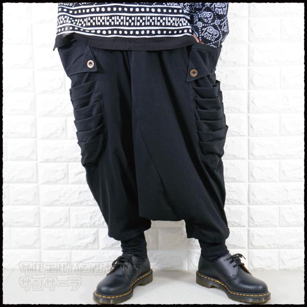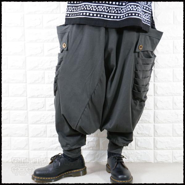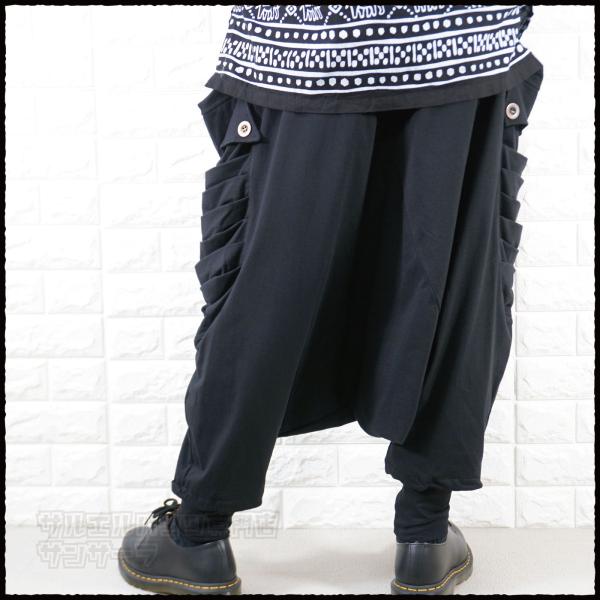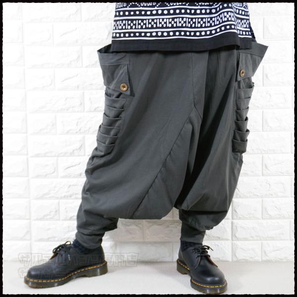 サルエルパンツ メンズ レディース エスニック 変形パンツ 無地 アジアンファッション ワイドパンツ 春 夏 秋 個性的 ボタン付きデザイン