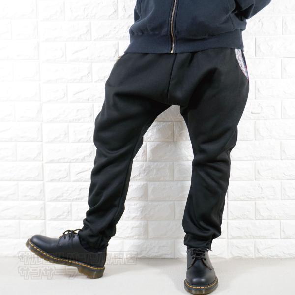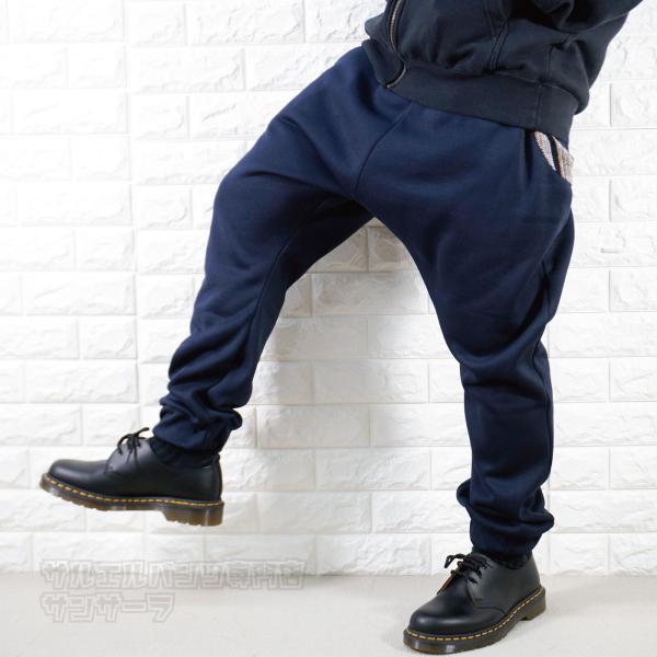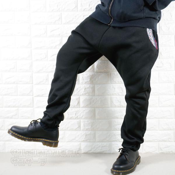 エスニック柄のポケットが特徴的な裏起毛サルエルパンツです。部屋着としてもゆったりと着ることが出来ます。