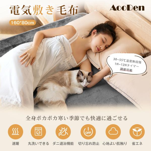 電気毛布 掛け敷き兼用 160x80cm 電気ひざ掛け 電気ブランケット 電気敷き 洗える ふかふか ソファ 30-55℃ 無段階調節 1-12h切タイマー ダニ退治