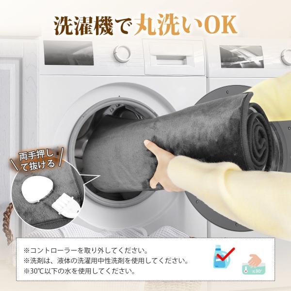 洗濯機で丸洗いOK&ダニ退治 優れたシール性能により、内部のヒーター線を傷める心配はありません。コントローラーを取り外すだけで、自宅の洗濯機で洗えます。温度は「55℃」に設定されており、約0.5〜1時間の使用でダニを効果的に消滅させ、抗菌・除臭効果も実現します。