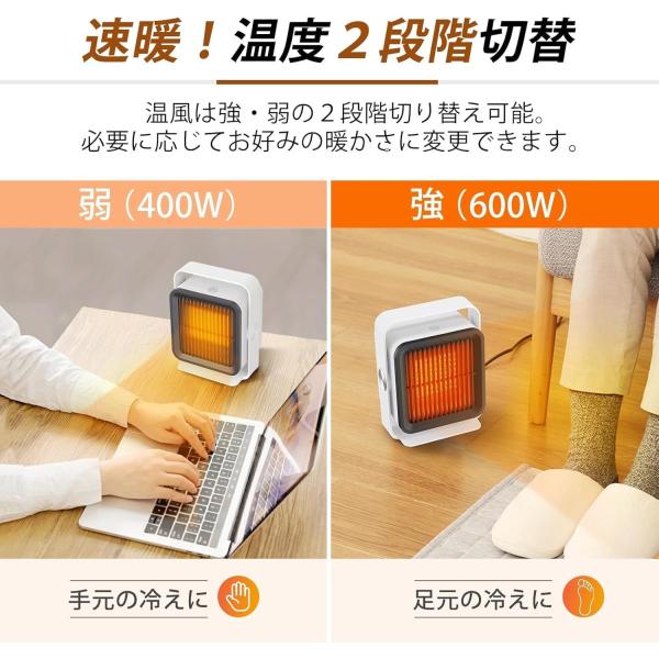 セラミックヒーター 人感センサー セラミックファンヒーター 小型 600W ミニ 電気ファンヒーター 電気ストーブ 2秒即暖 2段階切替 足元ヒーター 省エネ PSE