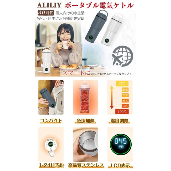 電気ケトル ポータブル 海外対応 携帯 湯沸かしケトル 小型 6段階温度調節 1-24H予約機能 保温 400ml トラベルケトル ステンレス 二重構造 旅行 一人用 ギフト