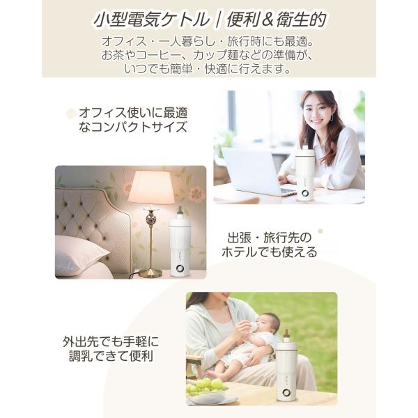 電気ケトル ポータブル トラベルケトル 小型 400ML 100V 300W 低消費電力 持ち運びケトル 湯沸かし 一人暮らし 電気ポット トラベル 湯沸かし器 水筒 急速沸かし