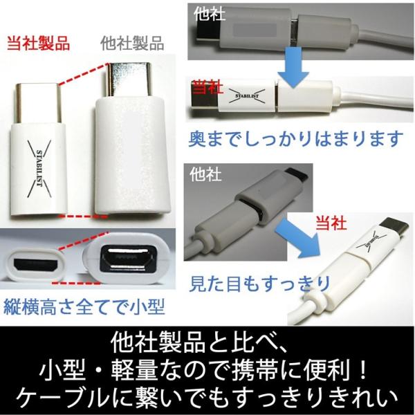 小型・軽量:MicroUSB to USBCの他社製品と比べ、縦横高さ全てで小型化、軽量化を実現