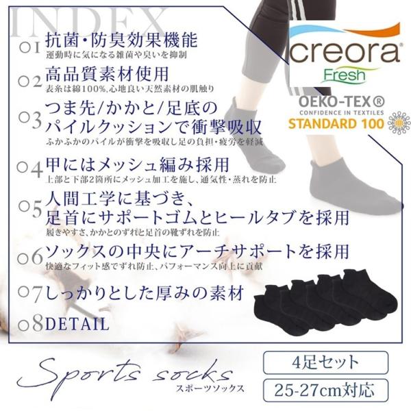 抗菌防臭 表糸:綿100% スポーツソックス 靴下 メンズ くるぶし 4足セット 消臭抗菌 25-28cm ショート スニーカー くつした くつ下