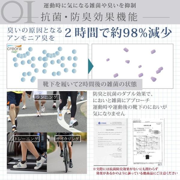 消臭・抗菌機能搭載:裏糸に消臭・抗菌機能のあるCreora Fresh素材を使用 運動時の気になる雑菌やにおいを抑制 専門機関にて効果検査済み