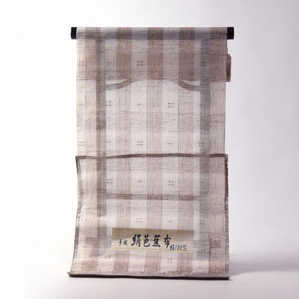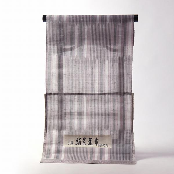 小千谷ちぢみ 反物販売 夏物 麻の着物 本場小千谷縮 吉新織物 灰色(白、ベージュ) 縞 キングサイズ お仕立て対応 盛夏のキモノ 着尺/反物 送