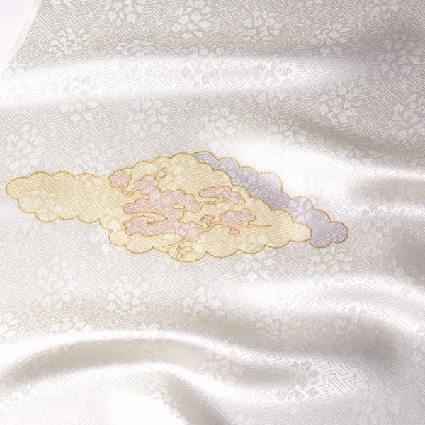紗綾形に花びらが浮かぶ綸子生地。