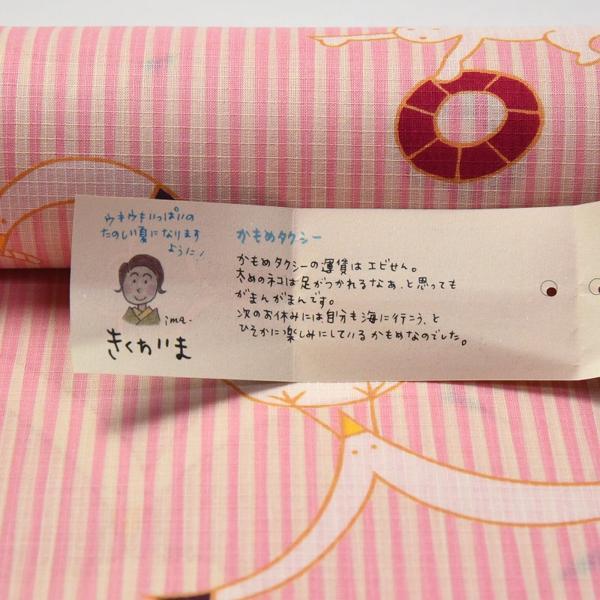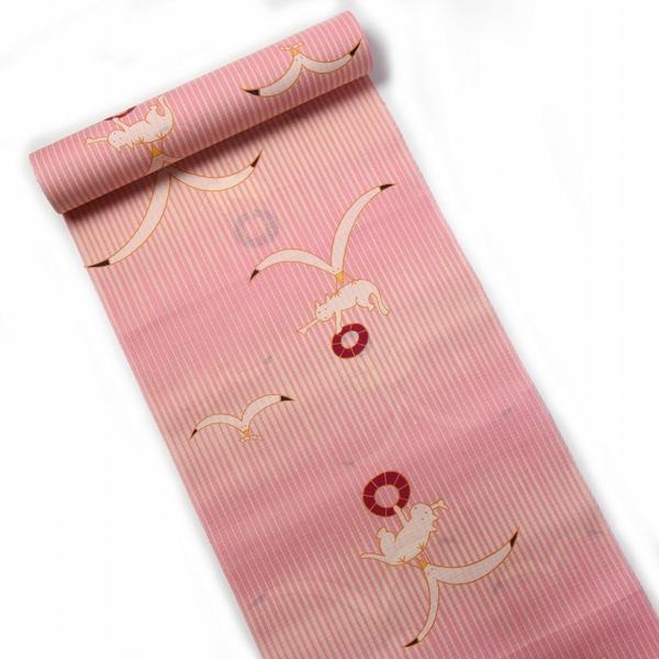 浴衣 反物販売 きくちいま かもめタクシー 薄ピンク色 綿紅梅 お仕立て対応 クイーンサイズ 幅39.8cm(1尺0寸5分)