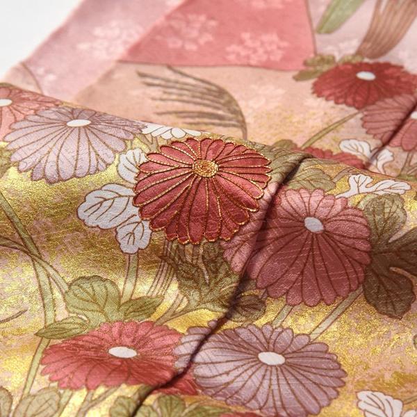紗綾形文様に花びらが浮かぶ綸子地を使用。