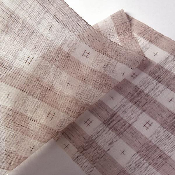 こちらは縞に井桁絣を織り上げた「絹芭蕉布」の紗紬着物でございます。