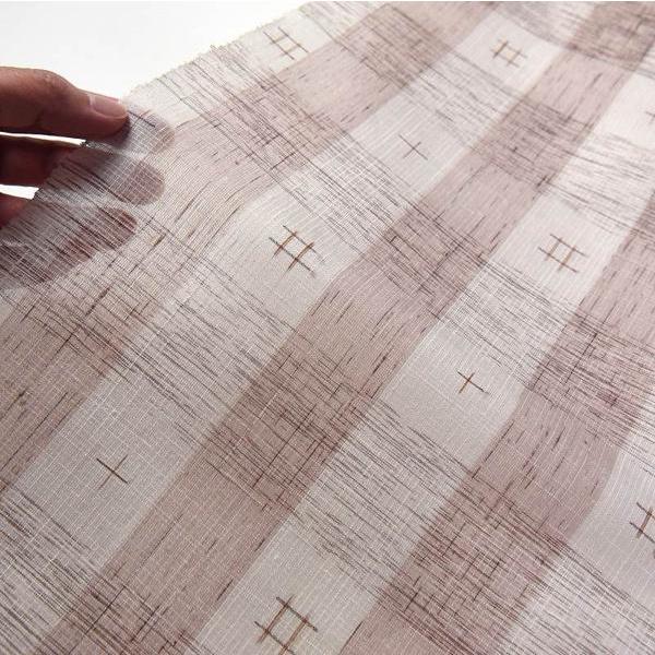 夏芭蕉 手縫いお仕立て付き 正絹 絹芭蕉布 紗紬 縞に井桁絣 白色、茶色レディース着物/和服/和装/夏着物/反物/夏の遊び着/カジュアル身長165c