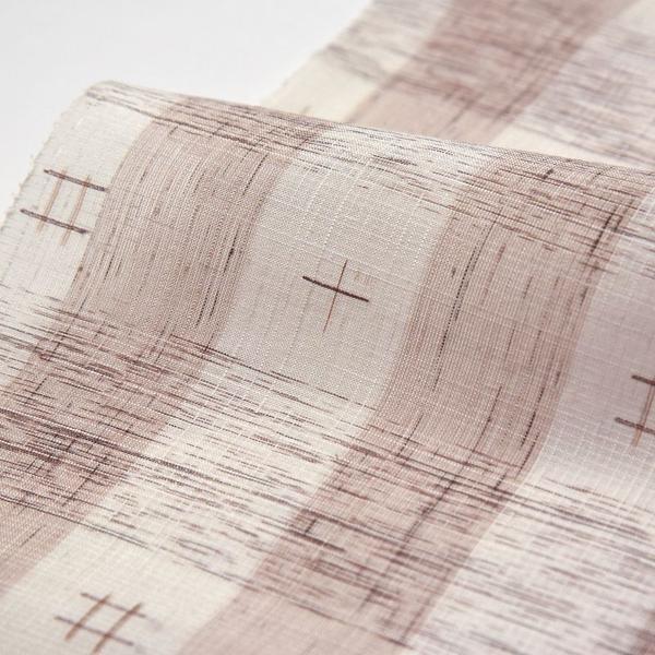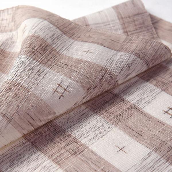 夏芭蕉 手縫いお仕立て付き 正絹 絹芭蕉布 紗紬 縞に井桁絣 白色、茶色【レディース着物/和服/和装/夏着物/反物/夏の遊び着/カジュアル】【身長165cmまで、裄70.5cmまで】【送料込み】