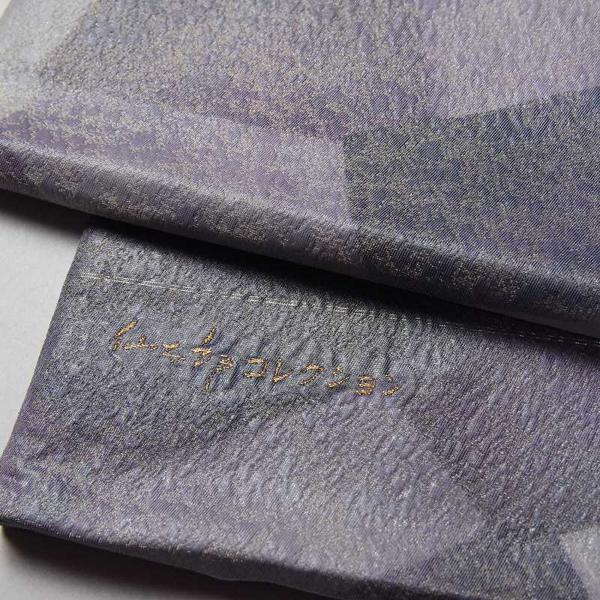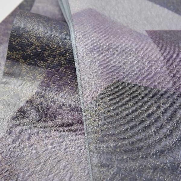 袋帯 お仕立て付き 仙太郎コレクション ふくらし箔 多角形模様 金糸織り込み 灰色、藤色 六通柄 正絹 着物/和服/カジュアル〜セミフォーマル 送料